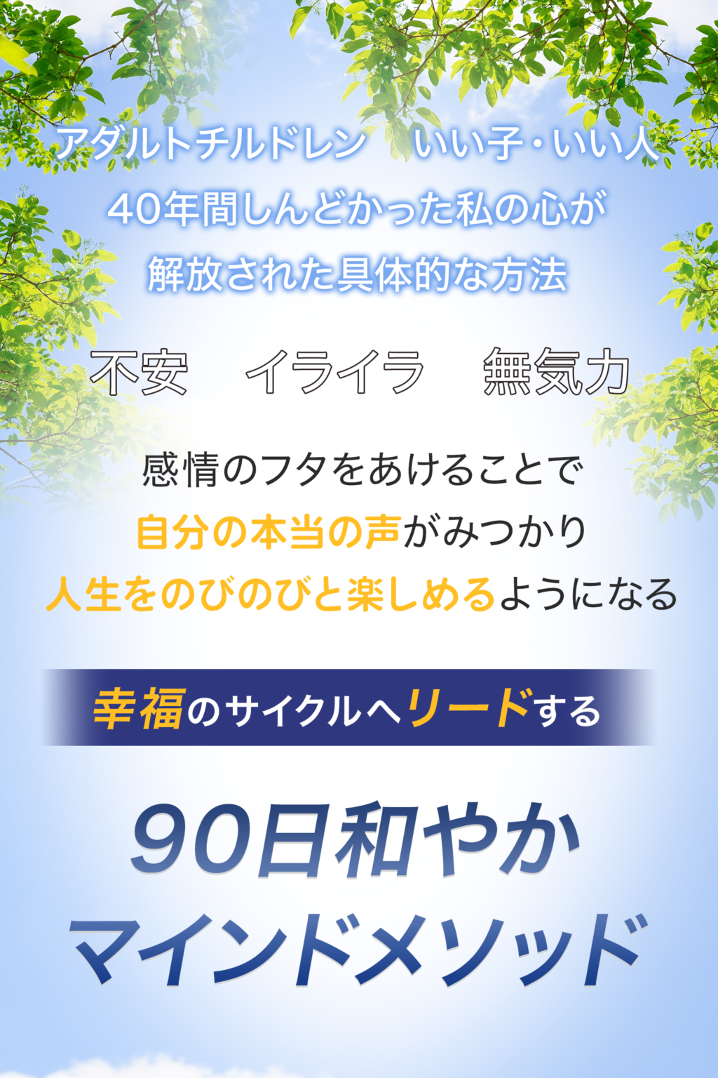 これまでカウンセリング多くの方々を「幸福のサイクル」へリードしてきた「90日和やかマインドメソッド」です。